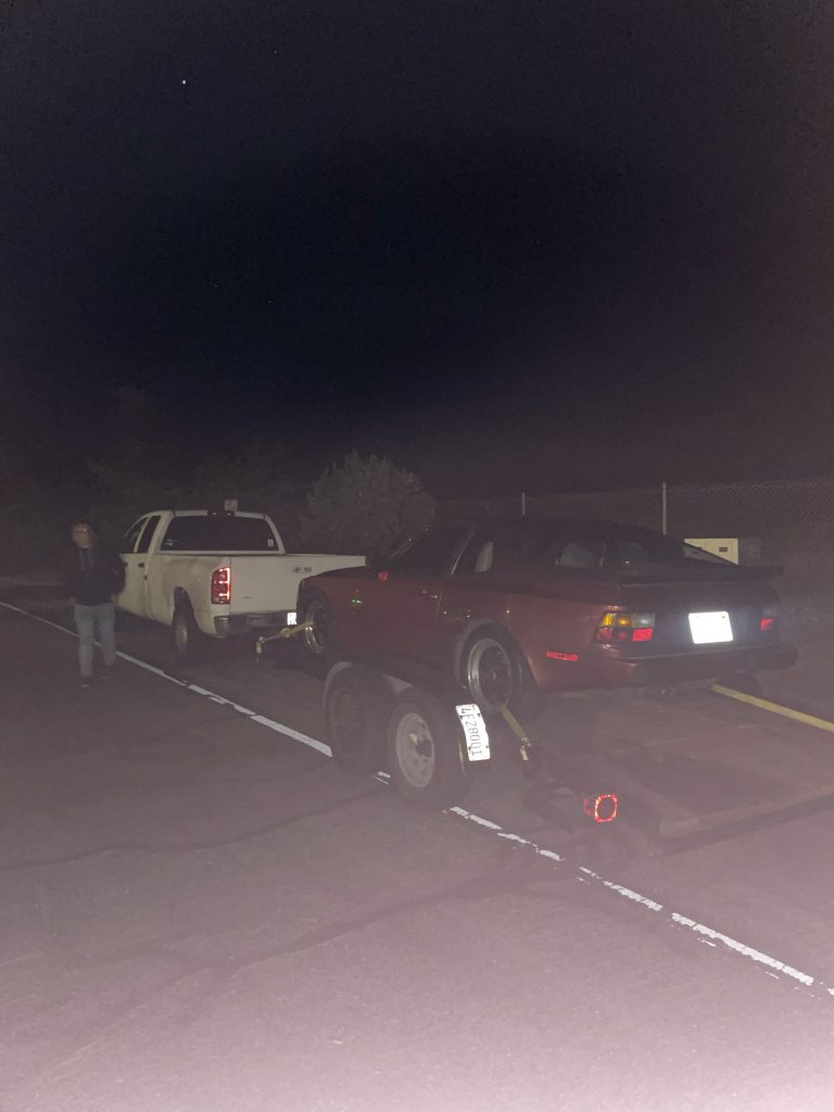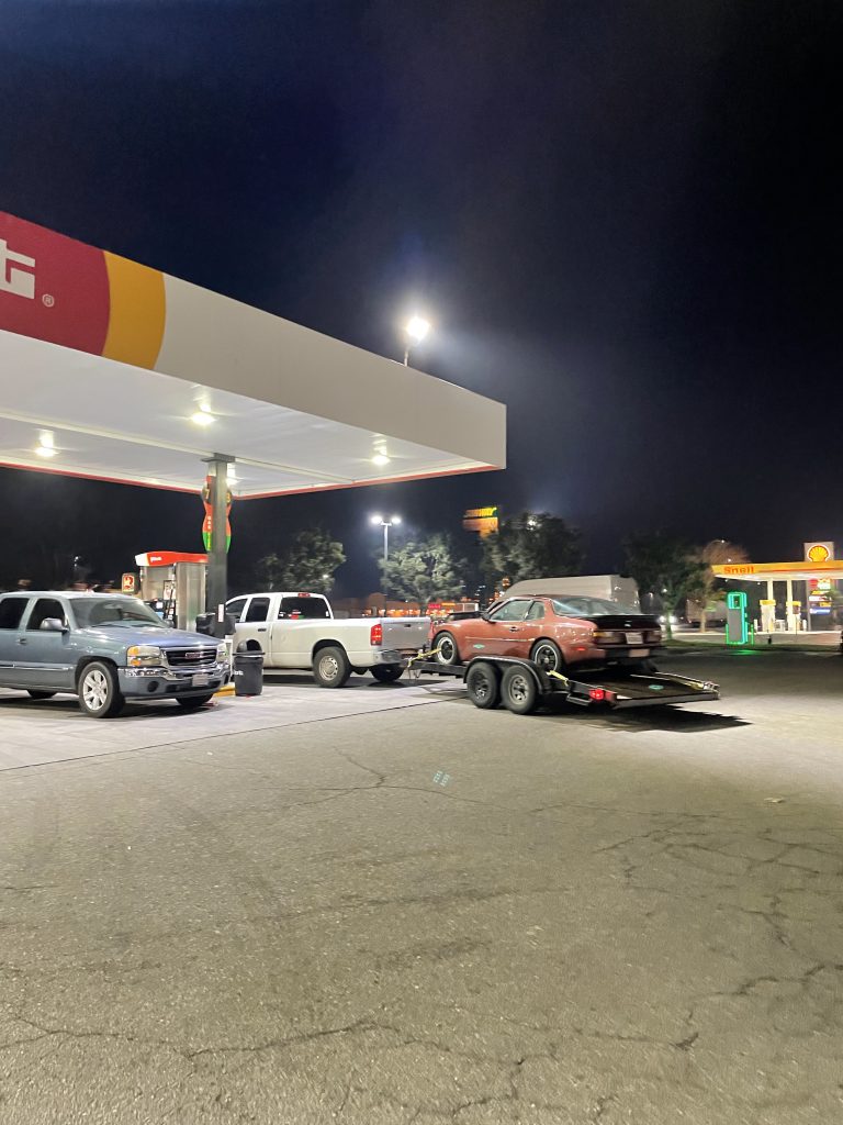 The owner I bought it from saw my listing and came and committed to buy it, took the 30 years of service records back and left me with a small deposit. He flaked and stopped responding to all of my calls and texts. I was out a huge folder of service records, and up $100. Buyer number two wanted it pretty badly, however he was located in San Diego, many hours away. We talked about shipping costs, but my friend needed some cash and had a diesel truck he was just itching to use. We negotiated a price, but I along with 2 more of my friends felt guilty so we tagged along. We left at around 1AM after fixing the trailer lights with stuff found at a Walmart at midnight. We drove through the night and eventually met the guy in an Albertsons’ parking lot in the brisk hours of the morning.